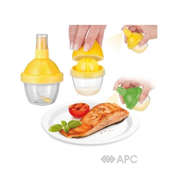 Распылитель лимонного сока Tescoma Vitamino 642770 отлично подходит для приправы рыбы, салатов, овощей, жареной пищи, и т.д. Свежевыжатый цитрусовый сок. Соковыжималка предназначена для выжимания лимона или лайма, распылитель для равномерного распределения сока. Можно хранить в холодильнике. Изготовлен из превосходного пластика. Можно мыть в посудомоечной машине. кроме клапана.