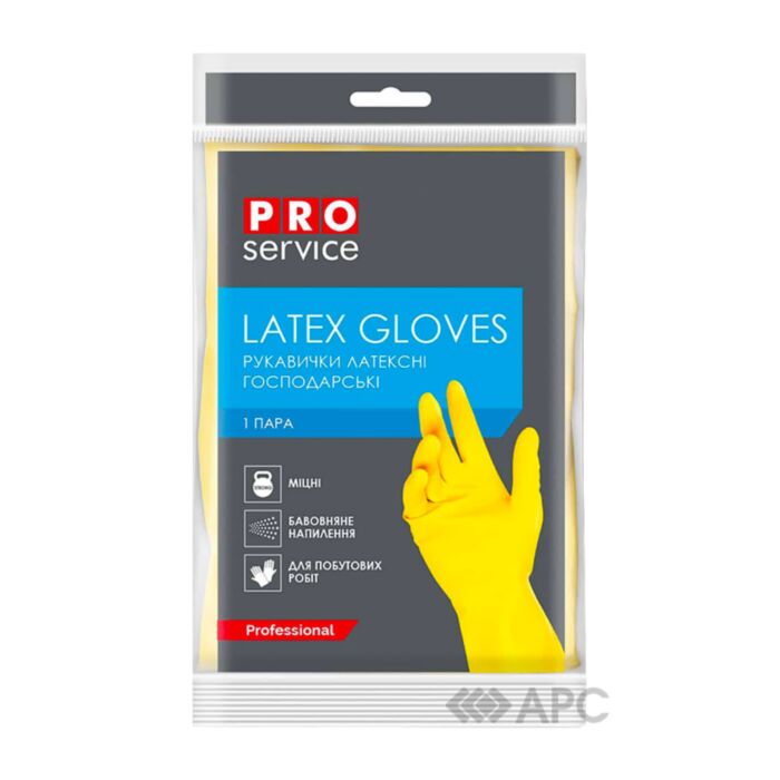 Перчатки PROservice универсальные латексные M — это хозяйственное защитное средство, защищающее руки от различных вредных растворов и веществ при уборке или мытье посуды. Изготовлены из крепкого, эластичного латекса, желтого цвета, имеют высокие манжеты. Внутреннее хлопковое покрытие помогает легко одевать и снимать рукавицы. Подлежат многократному использованию, размер M.