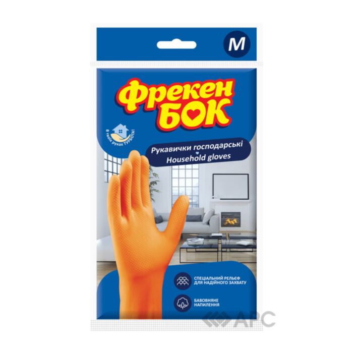 Перчатки универсальные Фрекен Бок M — это хозяйственное защитное средство, защищающее руки от различных вредных растворов и веществ при уборке или мытье посуды. Изготовлены из крепкого, эластичного латекса, желтого цвета, имеют высокие манжеты. Рифленая рабочая поверхность предотвращает ускользание предметов из рук. Внутреннее хлопковое покрытие помогает легко одевать и снимать рукавицы. Подлежат многократному использованию, размер M.