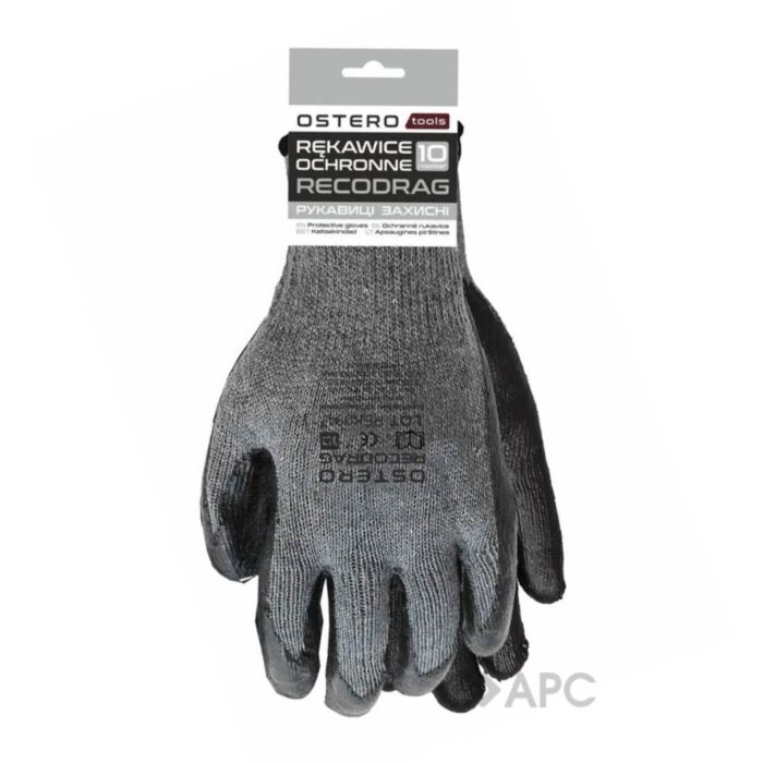 Перчатки защитные Ostero RECODRAG размер 10 предназначены для защиты рук во время выполнения различных работ. Изготовлены из прочного трикотажа, который обеспечивает устойчивость к разрывам и механическим повреждениям. Они имеют резиновое покрытие с пористой структурой, которое улучшает сцепление с предметами, что является важным при работе с инструментами или материалами. Размер 10 указывает на соответствующий обхват ладони. Эти перчатки подходят для использования в строительных, монтажных, ремонтных и других видах работ, обеспечивают надежную защиту рук от механических повреждений, таких как порезы, царапины и истирание, а также улучшают сцепление с предметами.