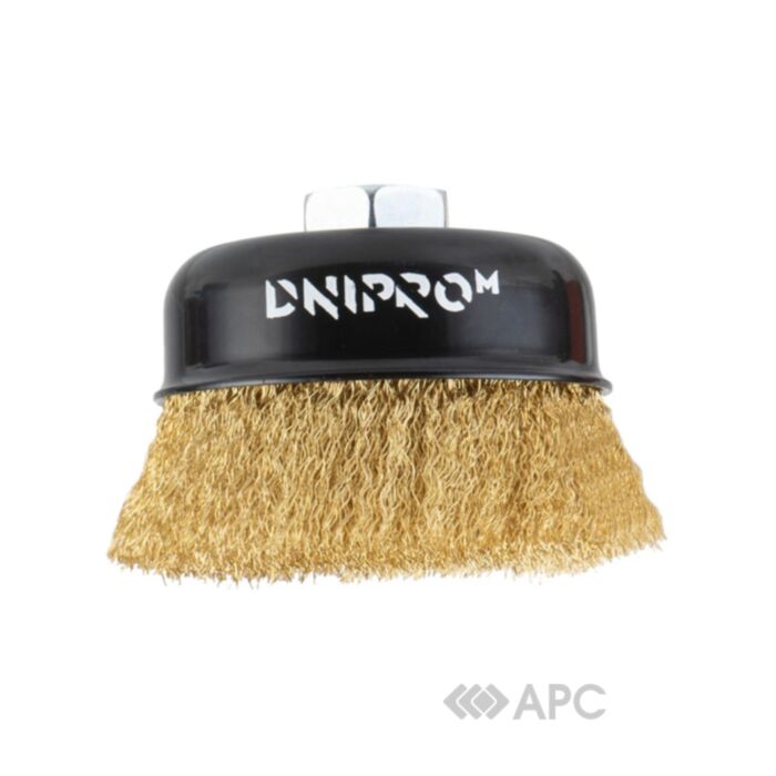 Щетка торцевая Dnipro-M Т75-L - насадка для угловой шлифовальной машины, с помощью которой можно обработать металл, дерево и камень. Изделие имеет форму конуса, которая позволяет добраться даже труднодоступных мест. Латунный гофрированный провод обеспечивает прекрасный результат. Щетка прекрасно сбалансирована.