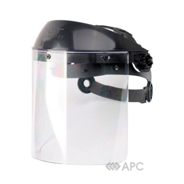 Защитный лицевой щиток из оптически прозрачного полистирола, размером 300х200 мм, толщиной 2 мм, устойчивый к воздействию искр и брызг расплавленного металла, высоким температурам, царапанию и истиранию. Материал стекла: поликарбонат.