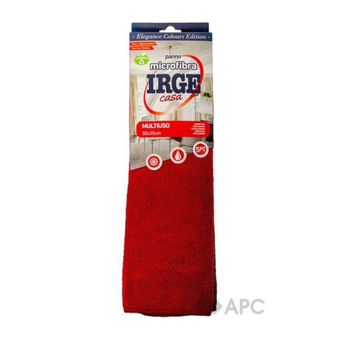 Салфетка универсальная Irge микрофибра 30*35 см 5 шт - это универсальный помощник для решения многих бытовых задач. Структура волокна ткани отлично проникает в самые мелкие отверстия обрабатываемых объектов и цепляет микроорганизмы, влагу и пыль, надежно удерживая их на своей поверхности. Именно эта особенность и определяет эффективное использование изделия в процессе уборки домов, квартир, офисов и заведений общественного питания.