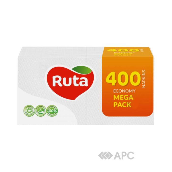 Салфетки бумажные Ruta Mega Pack в удобной большой упаковке на 400 штук — идеальный выбор для громких празднований или ежедневного использования. Классические белые однослойные изделия стандартного размера 24х24 см изготавливаются из натуральной целлюлозы без примесей, ведь украинский производитель заботится о качестве и безопасности своей продукции. Салфетки с рельефным тиснением дополнят сервировку стола, помогут в нужный момент удалить загрязнение или влагу, например разлитые напитки или следы пищи.