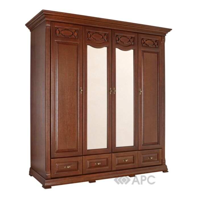 Шкаф четырехдверный Элеонора Стиль изготовлена из массива натурального дерев, с использованием лакокрасочных материалов производства Италии, что является гарантией качества на долгие годы. Шкаф четырехдверный Элеонора выполнен в классическом дизайне, что поможет ему запросто вписаться в интерьер соответствующего стиля. Шкаф оснащен выдвижными ящичками, благодаря которым Вы сможете хранить все необходимые вещи.