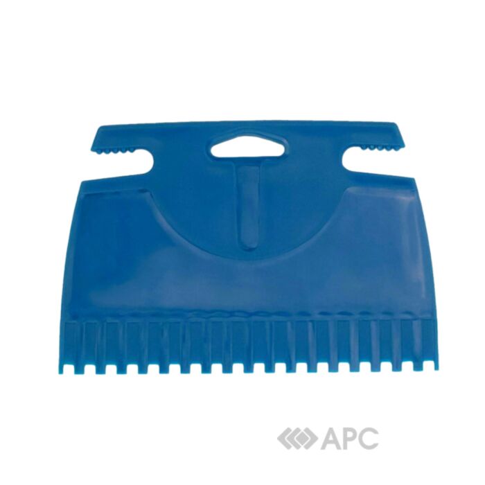 Специальный пластмассовый шпатель Color Expert 94000702 зубчатый 18 см используется для нанесения клеевых смесей в узких и труднодоступных местах. Подобный инструмент просто не заменим при облицовочных работах стен плиткой. Шпатель помогает удалить излишки клея, что не только экономит смесь, но и делает соединение более надежным. Размер шпателя составляет 180*125 мм. Размер зубьев 5 мм.