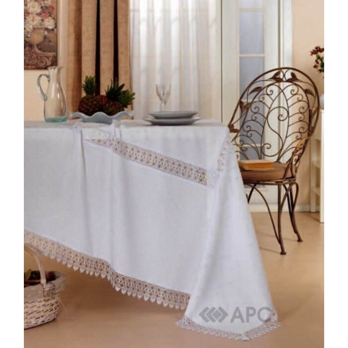 Скатерть Tabe AGK 2 с гипюром Beyaz-белый Beysu из полиэстера украсит ваш праздничный стол. Настоящим украшением скатерти станет изысканная кружевная отделка.
