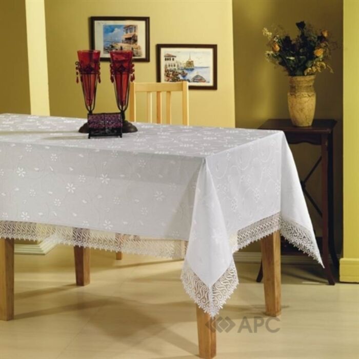 Скатерть Tabe KDK Lux Krem Beysu из полиэстера украсит ваш праздничный стол и наполнят ваше торжество особым духом. Настоящим украшением служит кружевная отделка скатерти.