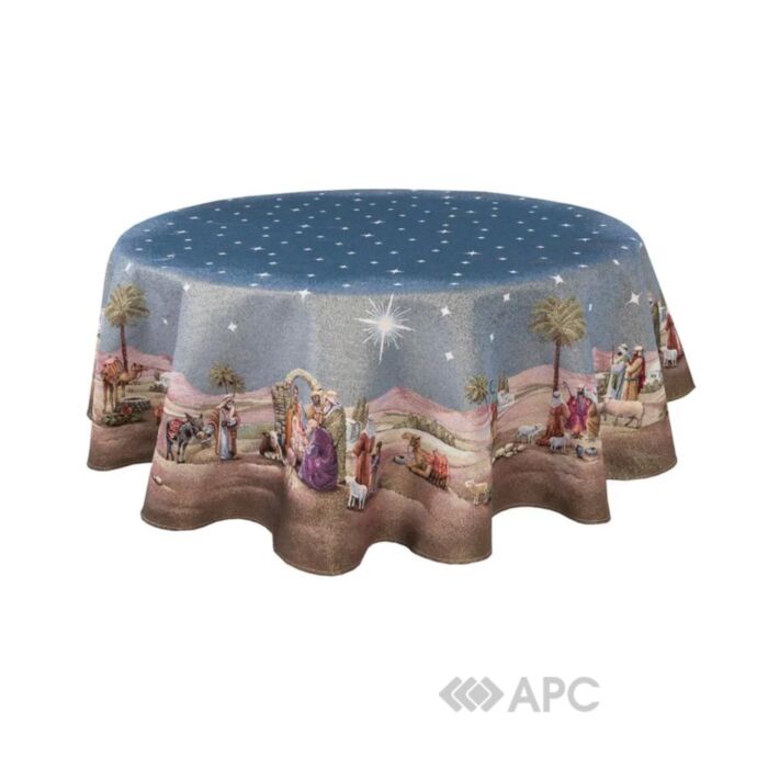 Скатерть гобеленовая Limaso Round1153AZ Вифлеемская ночь 140D – праздничный и яркий элемент декора Вашего дома. Глядя на узор этого изделия, сразу упоминаются праздники, подарки, тепло и уют. Удачное приобретение, если вы хотите освежить интерьер и собрать за столом всю семью. Скатерть мягкая, легкая, приятная на ощупь, крепкая и износостойкая. Пусть даже обычный стол станет праздничным.