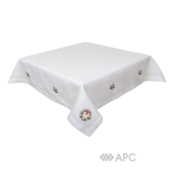 Скатерть новогодняя Limaso SKV16-180 Рождественский венок 140*180 см — это приятный на ощупь, красивый и практичный домашний текстиль, характеристики которого обеспечиваются использованием натурального льна. Льняная скатерть очень экологичная, цветоустойчивая и пластичная, благодаря чему во многом превосходит свои синтетические аналоги. Белая скатерть с рождественским рисунком станет главным украшением праздничного стола. Вышитый узор делает интерьер более уютным и домашним.