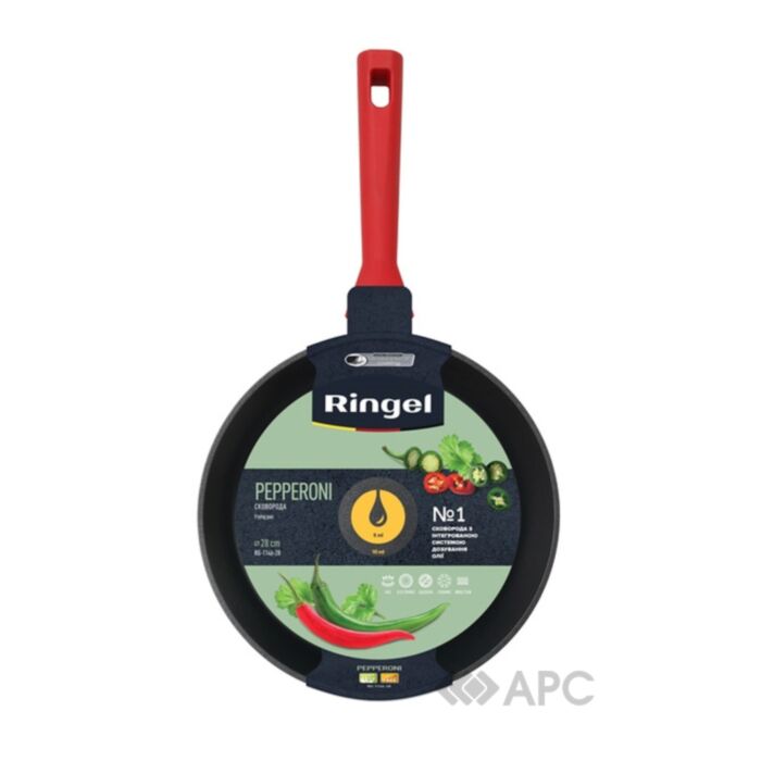 Сковорода глубокая Ringel Pepperoni RG-1146-28 28 см изготовлена из качественного кованого алюминия. Легкая и прочная посуда с быстрым и равномерным нагревом, которая подходит для приготовления и разогрева самой разнообразной пищи. Долговечное антипригарное покрытие делает изделие устойчивым к царапинам и не допускает приставания пищи. Благодаря высоким бортам очень удобно перемешивать большие объемы пищи, не допуская ее высыпания наружу. Покрытие сковородок позволяет использовать во время приготовления даже металлические аксессуары и мыть такую посуду в посудомоечной машине. Сковороды линейки Pepperoni можно использовать на любых типах плит, включая индукционные.