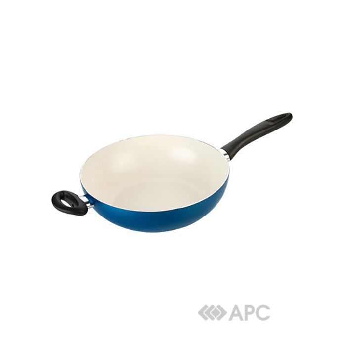 Сковорода с инновационным керамическим противопригарным покрытием превосходно переносит высокую температуру, тепловые удары и механические воздействия. Производство этого покрытия экологически чистое. Ручка эргономичная с нескользящей поверхностью. Сковорода подходит для всех типов плит кроме индукционной, можно мыть в посудомоечной машине. Дно сковороды утолщённое: 5 мм.