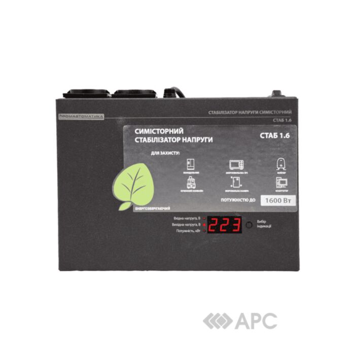 Стабилизатор напряжения Промавтоматика Стаб 1,6 кВт симисторный применяется для страховки техники бытового и промышленного предназначения, а также электроустройств разной мощности от перегрузок, увеличения и снижения напряжения, коротких замыканий в электрической сети. Благодаря оснащению отсекателем прибор устраняет излишки питания, которые могут вывести из строя оборудование.