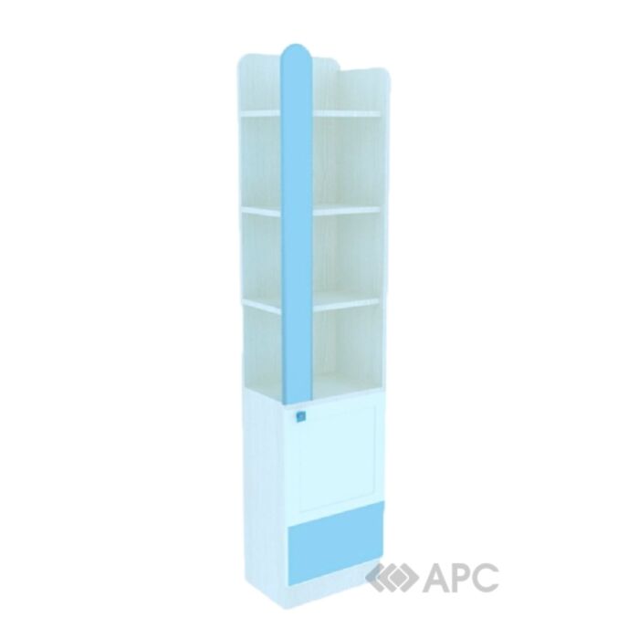 Фасады детского стеллажа могут быть бело-голубого или бело-розового цвета.