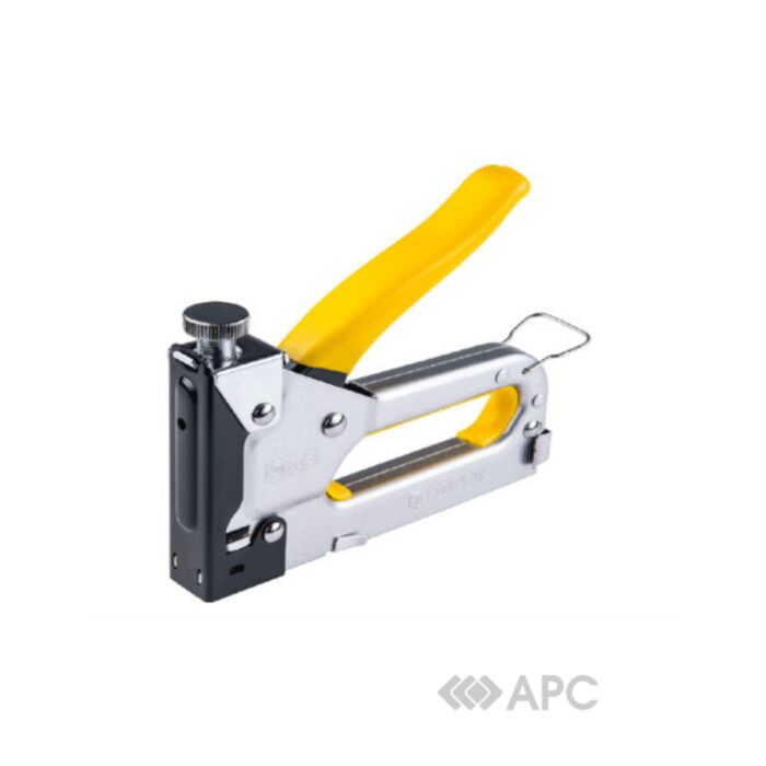 Мебельный степлер – практичный, удобный и часто незаменимый инструмент. Как ясно из названия, главным его применением является работа с мебелью: крепление обивки, присоединение фанерного щита и т.д. Однако этим его функции не ограничиваются. Степлер прекрасно подойдет для создания крепежа между разными элементами средней плотности. Широко данное приспособление используется во время ремонта. Позволяет прикрепить защитную пленку для исключения распространения по помещению пыли, запахов и влаги; фольгу, ВПЭ и другие изоляционные материалы небольшой толщины и твердости также удобно закрепить при помощи степлера. Может применяться и для выполнения других заданий. Конструкция достаточно проста в использовании. Достаточно просто прижать рабочий материал инструментом к необходимой поверхности и нажать спусковой рычаг. Автоматическая пружинная система подачи скоб позаботится о том, чтобы вы могли работать быстро не испытывая неудобств. При всей легкости в эксплуатации является достаточно мощным, при использовании рекомендуется использовать защитные очки.