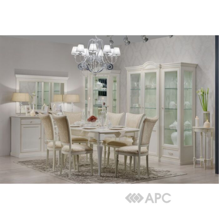 Обеденный стол Венеция длиной 120 см изготовлен в благородном классическом стиле. Изящные линии прямоугольной столешницы цвета слоновой кости, фигурные, резные ножки из натурального дерева, благородная бежевая патина – воплощение роскоши и элегантности классики.
