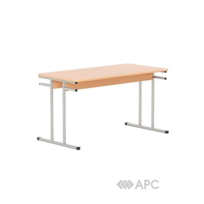 Парта школьная Е-561/3 T (нерегулируемая). Столешница выполнена из высококачественного ДСП, по краям поклеена кромка из ПВХ. Толщина кромки составляет 0,5 мм. Цвет парты не отвлекает на себя внимание, и способствует фокусировке зрения ученика на книге либо тетради. Устойчивость конструкции обеспечена применением металлической рамы, окрашенной черной порошковой краской. На ножках рамы предусмотрены пластиковые заглушки для предотвращения повреждения поверхности пола. Толщина плиты ДСП составляет 16 мм, благодаря чему способна выдержать большую нагрузку. Расстояние от глаз до поверхности при правильной осанке составил 30-40 см, что оптимально для учебных заведений. Поверхность столешницы предотвратит появление солнечных бликов. Так же предусмотрена возможность индивидуального цветового решения столешницы.