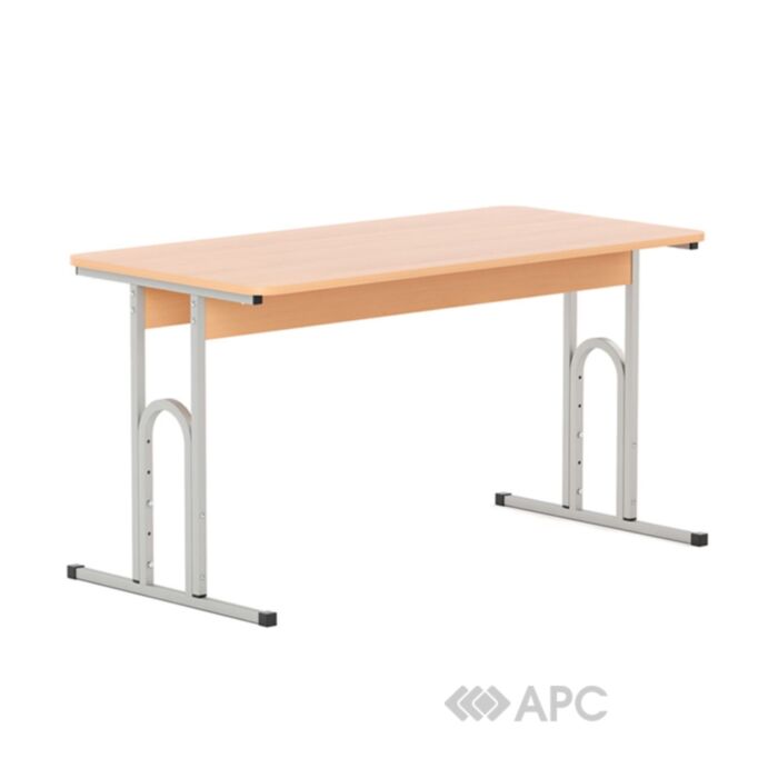 Парта школьная Е-571/2 . Столешница выполнена из высококачественного ДСП, по краям поклеена кромка из ПВХ. Толщина кромки составляет 0,5 мм. Цвет парты не отвлекает на себя внимание, и способствует фокусировке зрения ученика на книге либо тетради. Устойчивость конструкции обеспечена применением металлической рамы, окрашенной черной порошковой краской. На ножках рамы предусмотрены пластиковые заглушки для предотвращения повреждения поверхности пола. Толщина плиты ДСП составляет 16 мм, благодаря чему способна выдержать большую нагрузку. Расстояние от глаз до поверхности при правильной осанке составил 30-40 см, что оптимально для учебных заведений. Поверхность столешницы предотвратит появление солнечных бликов. Стол выполнен двухместным, по этому подходит для большинства классов либо аудиторий. Так же предусмотрена возможность индивидуального цветового решения столешницы.