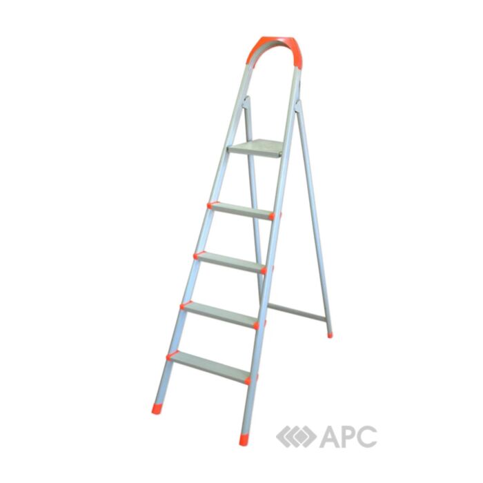 Стремянка 70-135 на 5 ступеней - изделие, в основе которого состоит прочный плоскоовальный профиль, выдерживающий нагрузку весом до 150 кг. Ступеньки устройства имеют дополнительные ребра жесткости, что препятствует деформациям, снижает риск соскальзывания и продлевает термин эксплуатации.