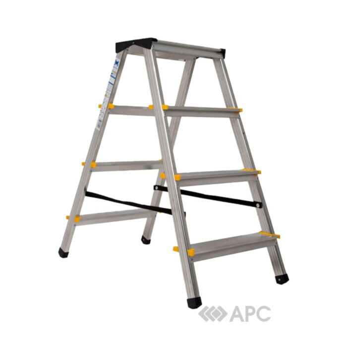 двухсторонняя металлическая стремянка Меткас производится из прочного профиля и оснащена широкими ступенями с антискользящим покрытием для безопасных спусков и подъемов. Дополнительные резиновые накладки на ножках обеспечивают устойчивость лестницы, а также сохранность напольного покрытия от царапин и повреждений. В сложенном виде стремянка очень компактная и удобная для хранения.