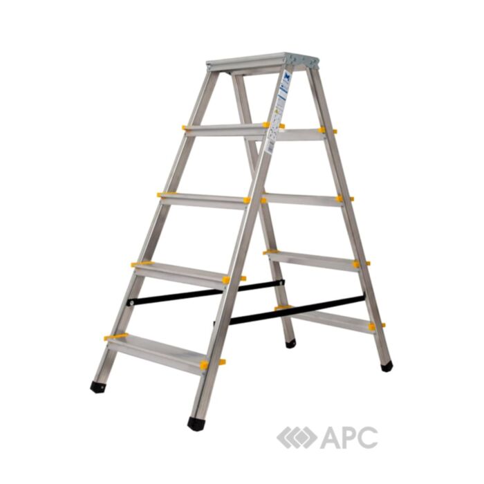 Стремянка двусторонняя Меткас Multi System DD4-150 5 ступеней понадобиться в разных бытовых и промышленных сферах для работ на небольшой высоте.