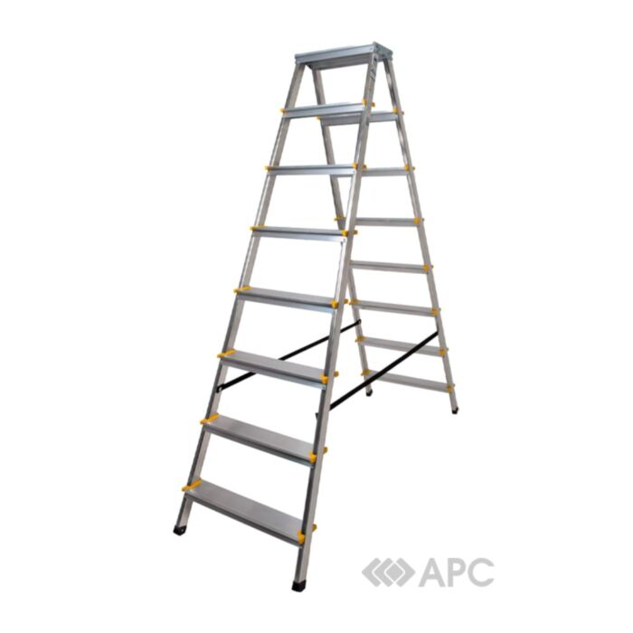 Стремянка двусторонняя Меткас Multi System DD8-150 8 ступенек понадобиться в разных бытовых и промышленных сферах для работ на большой высоте.