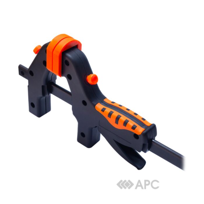 Струбцина универсальная F-образная HorsAY Hard 2121-001 300*605 мм — этот инструмент является вспомогательным приспособлением, которое отвечает за надежную фиксацию детали во время ее обработки, а также для создания плотного контакта между двумя или несколькими деталями, например, при сверлении или склеивании.