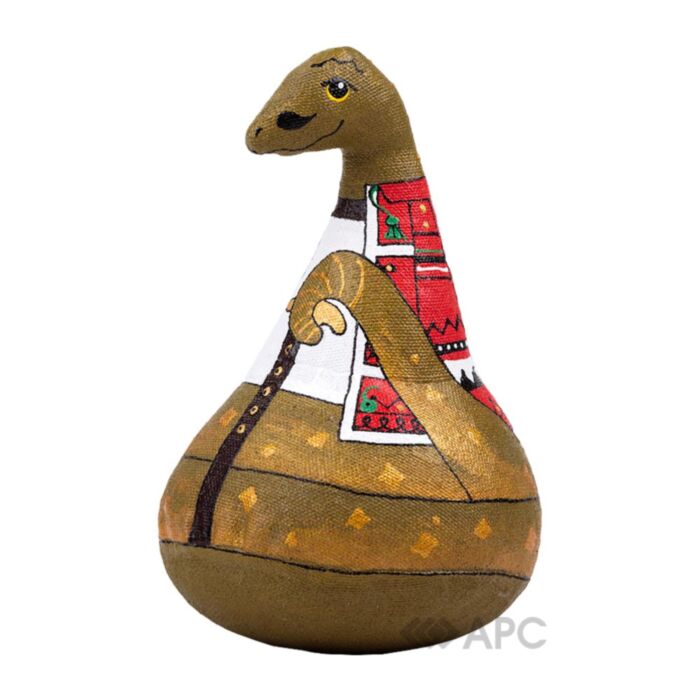 Игрушка пошита из натуральных тканей и наполнена синтепоном, что придает ей легкости и приятной текстуры. Благодаря защитному слою акрила цвета остаются яркими даже спустя годы. Уникальный декор выполнен вручную красками, что добавляет изделию индивидуальности. Этот сувенир высотой 23 см станет стильным и символичным дополнением интерьера или аутентичным подарком.