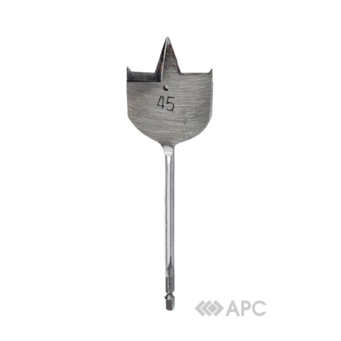 Сверло для дерева APRO 830284 перовое 45 мм 150 мм используется для создания ровных отверстий ручной дрелью или стационарным станком в работе с мягкими и твердыми породами дерева, фанерой, плитами ДСП, МДФ, гипсокартона и эластичного пластика. Обработка поверхностей данного типа не требует особых усилий или навыков, но правильно подобранное сверло обеспечивает максимально качественный результат в короткие строки без дефектов и испорченных стройматериалов. Сверло для дерева выполнено из стали и оснащено шестигранным хвостовиком.
