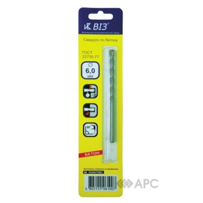 Трудно представить строительно-ремонтные работы без использования дрели. В зависимости от материала в котором нужно сделать отверстие будет зависеть вид нужного сверла. ВИЗ 34376 - расходный материал для работы с бетоном и кирпичом. Изготовлен из прочной стали и имеет цилиндрический хвостик, при работе остатки стружки и пыли выводятся вверх. Такое сверло прекрасно подходит как для ударной. так и для безударного дрели.