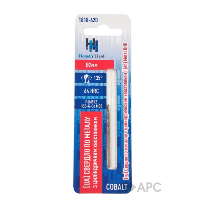 Сверло по металлу HorsAY Hard 1818-620 Cobalt HH 2 мм - это инструмент из быстрорежущей стали, которая не только обеспечивает высокую прочность и гарантирует продолжительный термин эксплуатации изделия, но и снижает стоимость расходного материала без потери его технических характеристик.