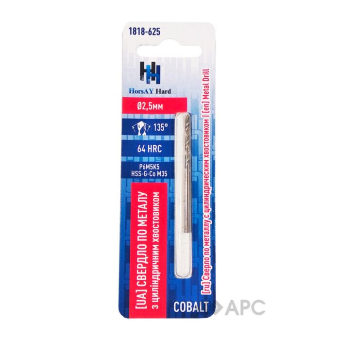 Сверло по металлу HorsAY Hard 1818-625 Cobalt HH 2,5 мм - это инструмент из быстрорежущей стали, которая не только обеспечивает высокую прочность и гарантирует продолжительный термин эксплуатации изделия, но и снижает стоимость расходного материала без потери его технических характеристик.