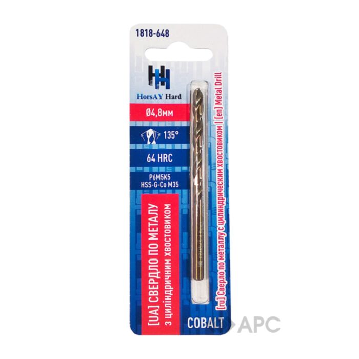 Сверло по металлу HorsAY Hard 1818-648 Cobalt HH 4,8 мм - это инструмент из быстрорежущей стали, которая не только обеспечивает высокую прочность и гарантирует продолжительный термин эксплуатации изделия, но и снижает стоимость расходного материала без потери его технических характеристик.