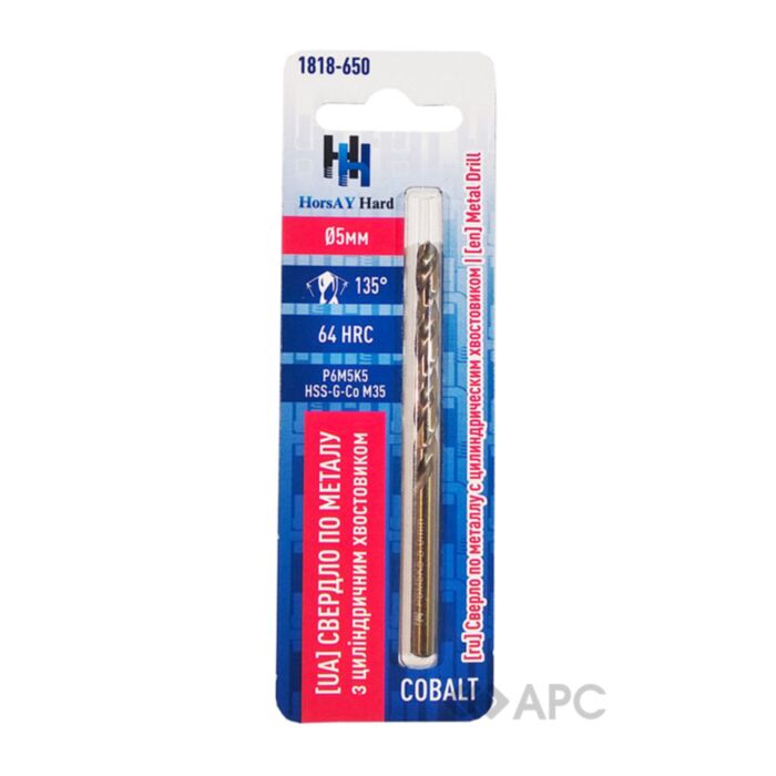 Сверло по металлу HorsAY Hard 1818-650 Cobalt HH 5 мм - это инструмент из быстрорежущей стали, которая не только обеспечивает высокую прочность и гарантирует продолжительный термин эксплуатации изделия, но и снижает стоимость расходного материала без потери его технических характеристик.