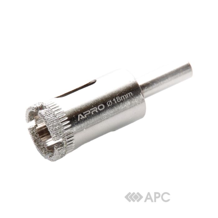 Трубчатое алмазное сверло (коронка) по плитке и стеклу Apro служит для сверления, создания углублений, сквозных отверстий, сверления существующих. Изделие выполнено из высококачественного материала; специальная форма обеспечивает максимальную производительность без излишнего перегрева. Сверло долго не теряет своих режущих свойств и обеспечивает максимально качественный результат. Рекомендуется использовать с водным охлаждением на низких оборотах.