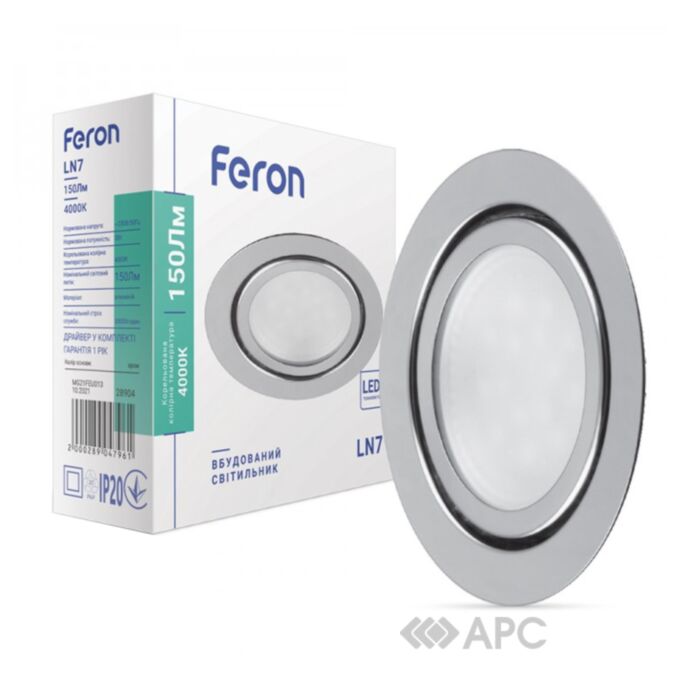 Светильник светодиодный Feron LN7 3W 150Lm 4000K хром - это отличный выбор для тех, кто желает снизить энергозатраты, повысить уровень комфорта и сохранить внешнюю среду. Компания Feron создает продукт высокого качества для освещения жилых, административно-офисных, торговых и общественных помещений.