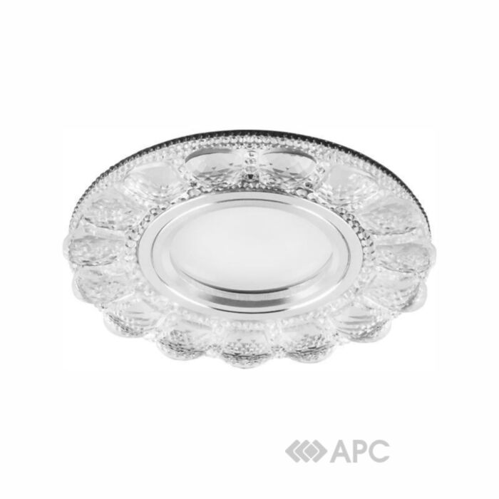 Встраиваемый точечный светильник Feron под лампу G5.3. Покрытие выполнено электрохимическим способом (предварительное анодирование и дальнейшее гальваническое покрытие), что позволяет светильнику долго сохранять первоначальный внешний вид.