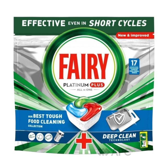 Таблетки для посудомоечных машин Fairy 28772 Свежий травяной бриз 17 шт — эффективное и удобное, а также экологическое и безопасное средство профессионального действия в формате таблеток, предназначенное для безупречного мытья посуды. Сочетает функцию жидкости для мытья и ополаскивателя, отлично удаляет различные пятна (жирные, от чая, кофе и т.п.), придает тарелкам, бокалам, столовым принадлежностям идеального сияния и блеска. В составе не содержатся фосфаты, ведь формула разработана с заботой о людях и окружающей среде. Одной таблетки достаточно на 1 цикл независимо от уровня загрязнений. Обладает приятным свежим цитрусовым ароматом.