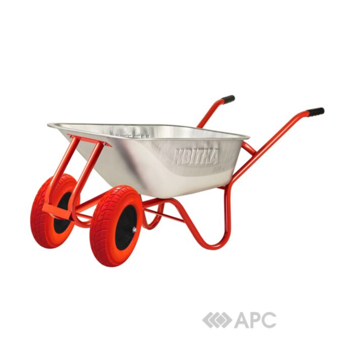 Тачка строительная Квітка — это специальный инструмент для транспортировки различных материалов для строительства. Благодаря принципу рычага, уменьшает нагрузку и требует меньше усилий для транспортировки. Изделие состоит из кузова, двух колес и ручек. Производится из высококачественного металла в сером цвете, имеет цинковое покрытие. Объем кузова 100 л, колесо полиуретанового типа, выдерживает значительные нагрузки. Данное оборудование характеризуется износостойкостью, надежностью, а также длительным сроком службы. Тип колеса: полиуретановое, диаметр 380 мм, 4х8”.