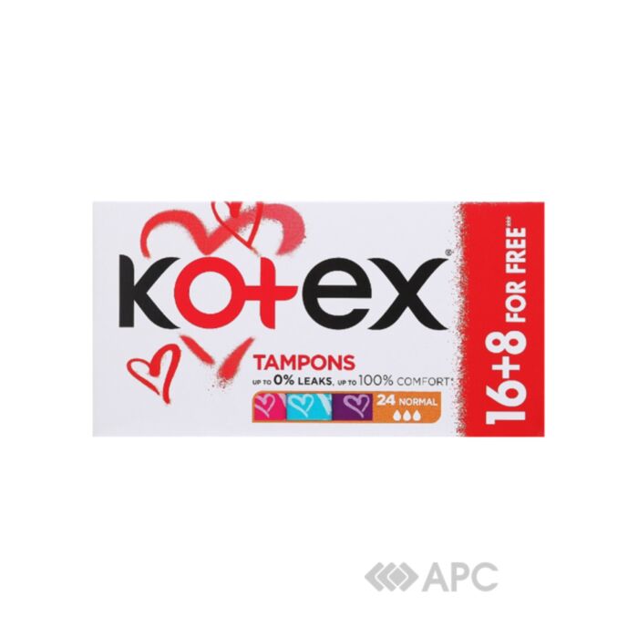 Тампоны Kotex Normal 16+8 шт. в выгодной акционной упаковке — идеальный выбор для женщин, стремящихся к комфорту и надежной защите во время менструации с умеренным количеством выделений. Благодаря высокой поглощающей способности, голубой абсорбирующей полоске Ultra sorb, особым углублениям и инновационной технологии FlexFit вы можете не волноваться из-за протеканий и дискомфорта во время встреч с друзьями, прогулок, тренировок и т.д. Закругленный кончик и гладкая поверхность SilkyCover способствует легкому введению, обеспечивает точное и комфортное позиционирование без неприятных ощущений. Каждое гигиеническое средство упаковано в индивидуальную обертку.