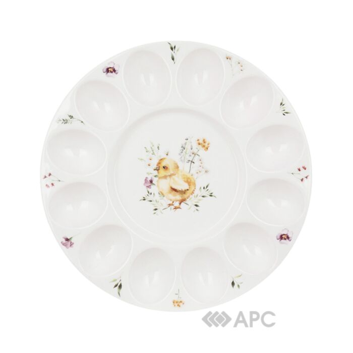 Тарелка для яиц BonaDi Весенняя история K097 26,5 см выполнена из качественной керамики с глянцевым покрытием будет служить декоративным и оригинальным элементом на Вашей кухне. Она предназначена для вареных или фаршированных яиц, может быть применена как пасхальная тарелка для подачи писанок.