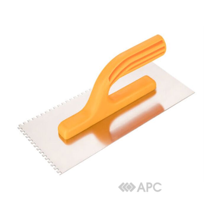 Терка Topex 13A288 прекрасно справляется с нанесением клея. Корпус изготовлен из нержавеющей стали, которая обладает превосходными техническими характеристиками. Наличие зубцов улучшает распределения смеси на нужной поверхности. Удобная ручка надежно прикреплена к основанию, поэтому можете быть уверены в надежности конструкции.