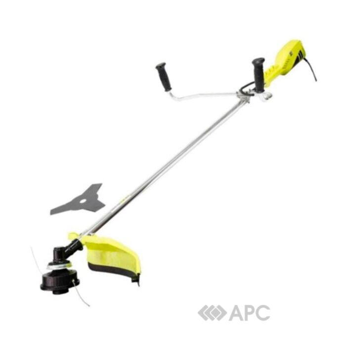 Электрический триммер укомплектован специальной ручкой и цельной алюминиевой штангой, обеспечивающей долговечность агрегата, роторной режущей системой с шириной захвата 420 мм и электрическим двигателем мощностью 2000 Вт.
