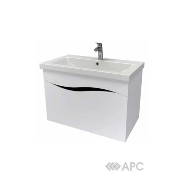 Подвесная (навесная) тумба с раковиной для ванной комнаты Альфа шириной 80см от фабрики Аква Родос оснащена двумя вместительными выдвижными ящиками.