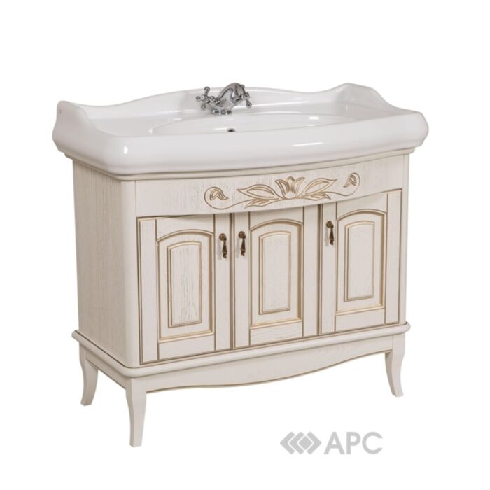 Коллекция АкваРодос Микела – мебель премиум-класса, изготовленная из натурального массива дерева ясень и высококачественных комплектующих. В коллекцию входит удобная тумба с большим умывальником «Turkuaz» (Турция), форма которого гармонирует с изящным стилем мебели, высокий пенал на четыре отделения с дверцами и ящиками, а также зеркало в деревянной раме украшенное, как и тумба, фрезерованным цветком.