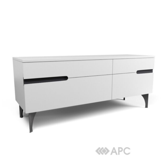 Стильна зовні і функціональна всередині тумба під ТВ, актуальне рішення для кожної сучасної вітальні. Так, наприклад, на широкій стільниці відмінно поміститься телевізор, його дівайси або предмети декору, а масу інших речей приховають в своїх надрах висувні ящики.
