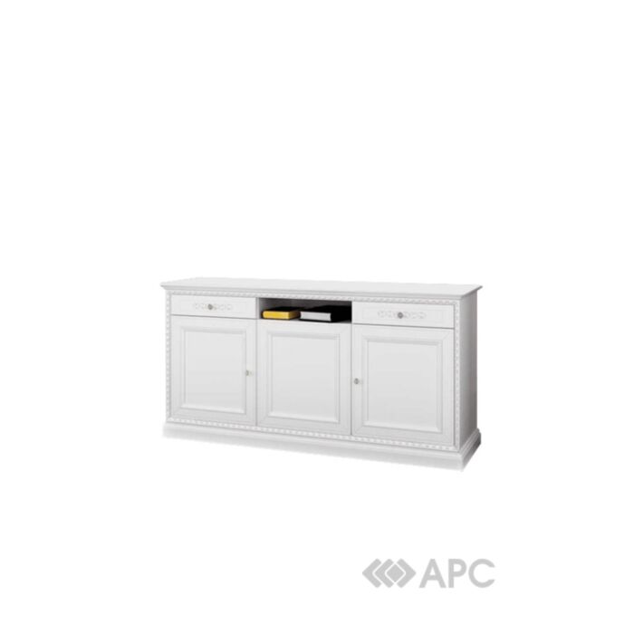 Элегантная тумба выполнена в благородном классическом стиле. Мебель для гостиной Венеция выполнена в цвете avorio/beige – это элегантный цвет слоновой кости, оттененный бежевой патиной, которая подчеркивает рельефность узоров и придает мебели роскошный винтажный вид. Декоративные элементы, опоры, карнизы, цоколя и профиля сделаны из массива дерева (ольхи).