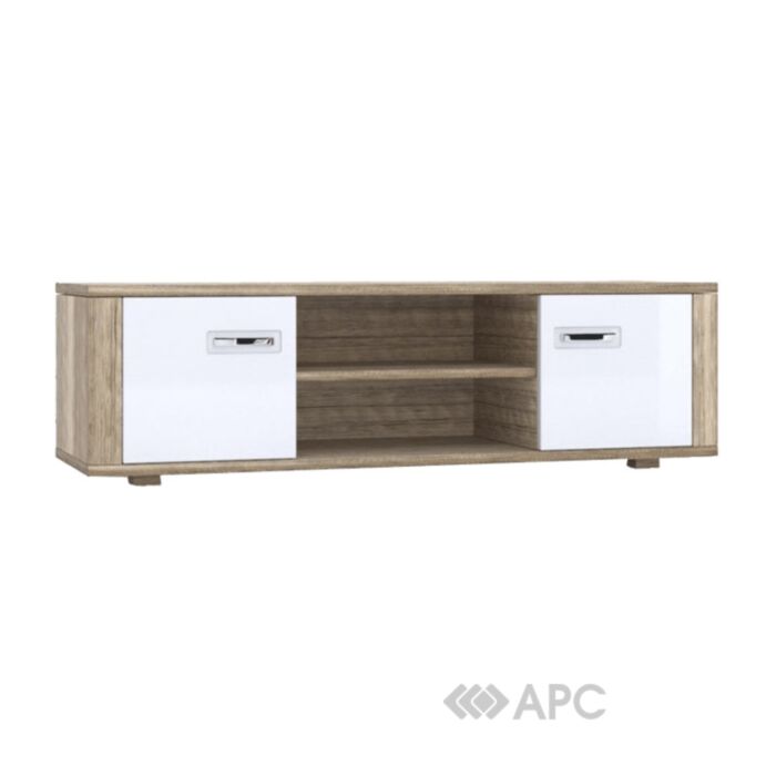 Простая, лаконичная конструкция изготовленная из ДСП является удобным местом для размещения аудио и видео аппаратуры. Две распашные ниши легко открываются с помощью металлических ручек, пригодятся для хранения аксессуаров.