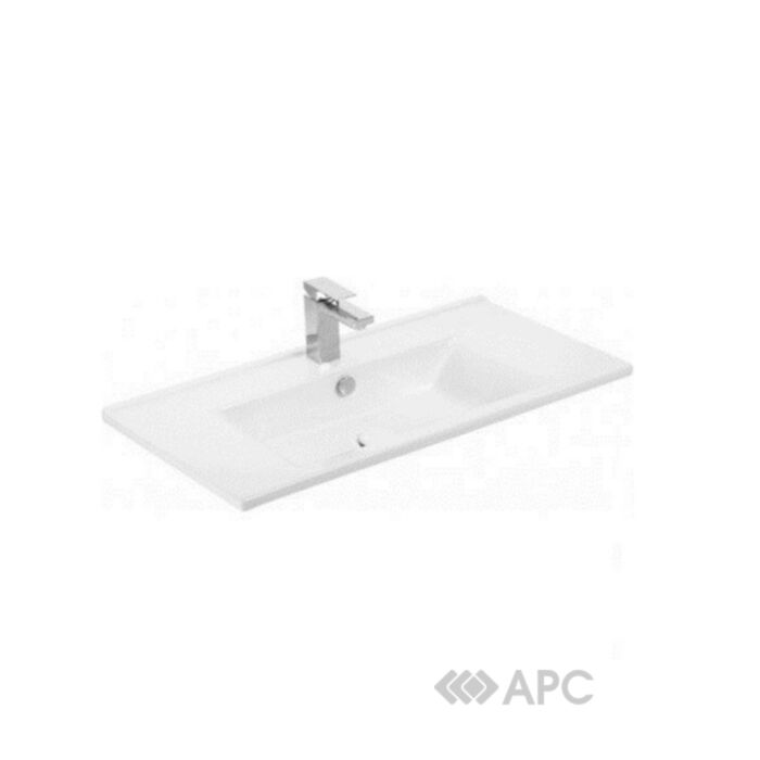 Умывальник Atria 85 см сделан из фаянса белого цвета. Имеет отверстие под смеситель и перелив, форма умывальника прямоугольная.