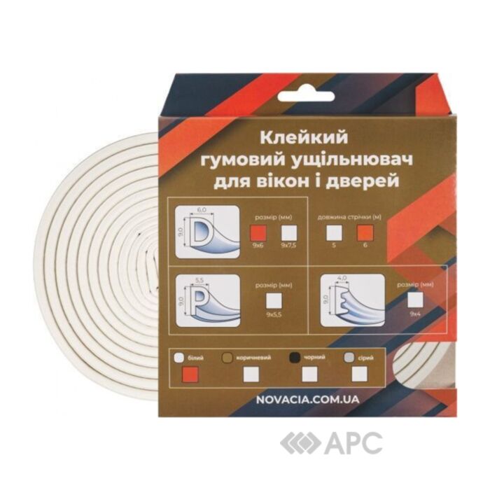 Уплотнитель Новация D-9.6 40901688 6 м белый идеально подходит для эффективного уплотнения щелей. Обеспечивает тепло- и шумоизоляцию, защищает от влажного воздуха и неприятных запахов. В осенне-зимний период позволит снизить расходы на отопление, а в теплое время года защитит от шума оживленной улицы. Помимо этого, уплотнитель способен амортизировать двери при закрытии, что влияет как на шум, так и на срок эксплуатации дверей.
